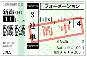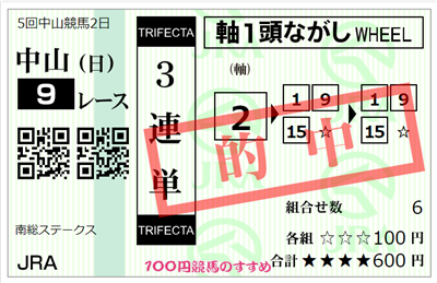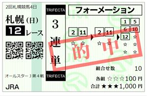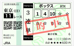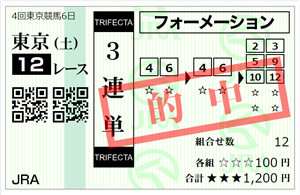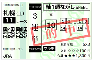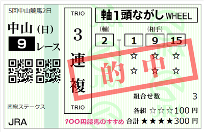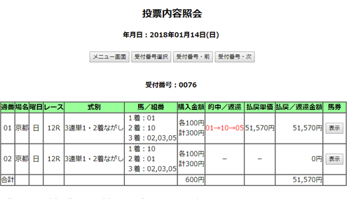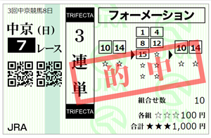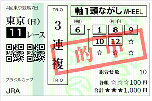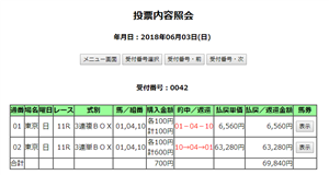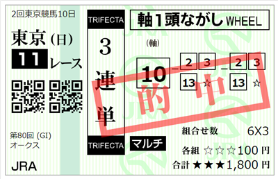 3連複も¥4,440ついたので計¥107,580の払い戻しでした。