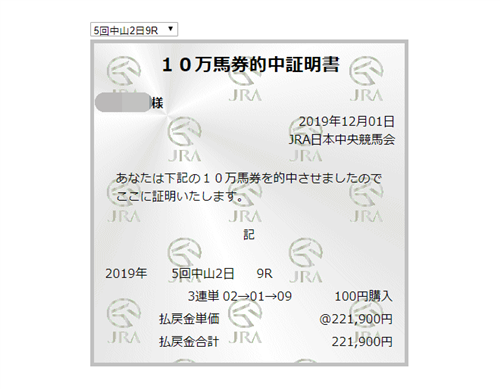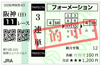 配当は30分前までは1,000倍超えてたのでゴール直後はガッツポーズで大喜びだったのですが、確定配当だいぶ下がりました。がっくし…また頑張ります。来週以降の予想をお楽しみに。