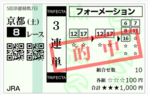 完璧に狙い撃ちで3連複と3連単ゲット。